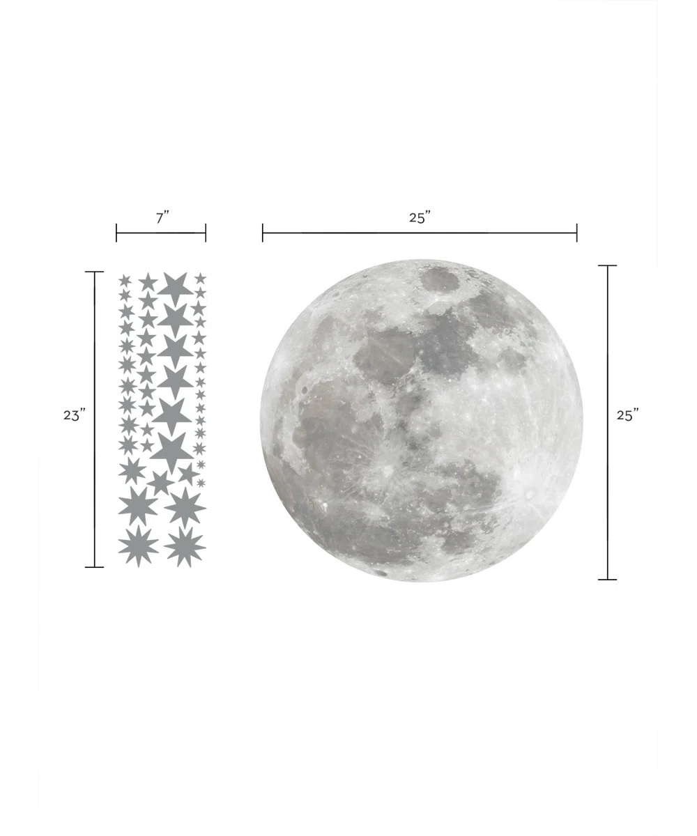 Bring stellar style to their space with this set of metallic peel-and-stick decals. This set of 49 stickers is made of matte vinyl and features an array of gold-toned stars in a range of styles and sizes and one 25” silvery moon. These decals are self-adhering, so they’re easy to apply to any clean primed, and painted surface. They’re also easy to remove and reuse, water-resistant, and easy to clean. This decal set brings a playful touch to any space-themed nursery, bedroom, or playroom.